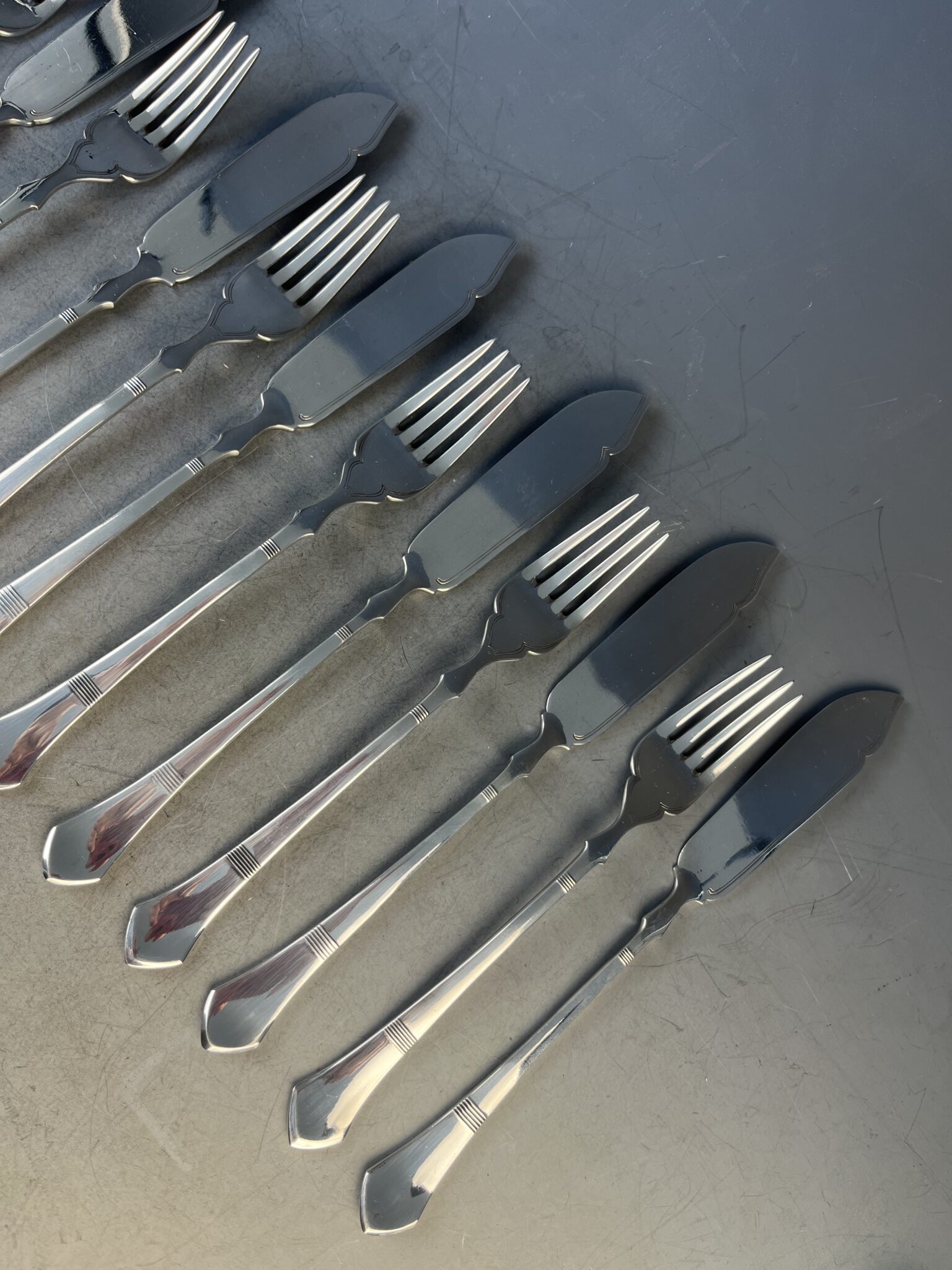 Versilbertes Jugendstil  Fischbesteck „Premiere“ für 6 Personen